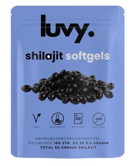 Die Shilajit-Softgels von luvy bieten 100% reines Shilajit in einer veganen Formulierung. Sie sind laborgeprüft in der Schweiz und unterstützen die Vitalität sowie die körperliche und geistige Leistungsfähigkeit. Ideal für alle, die ihre Energie steigern und ihr Wohlbefinden verbessern möchten.